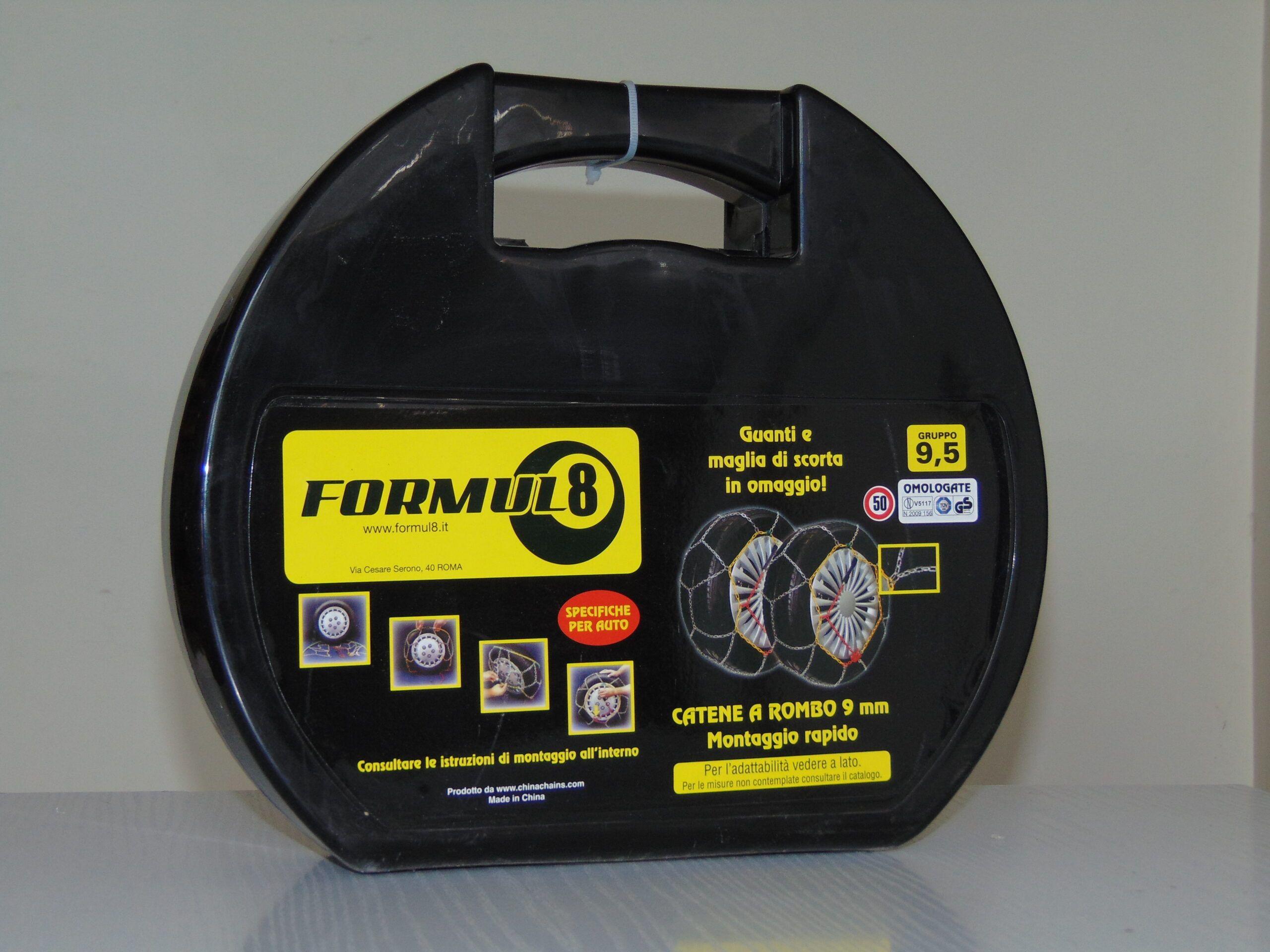 Coppia di catene da neve a rombo con maglia da 9 mm, omologate, a montaggio rapido. Guanti e maglia di scorta in omaggio.
